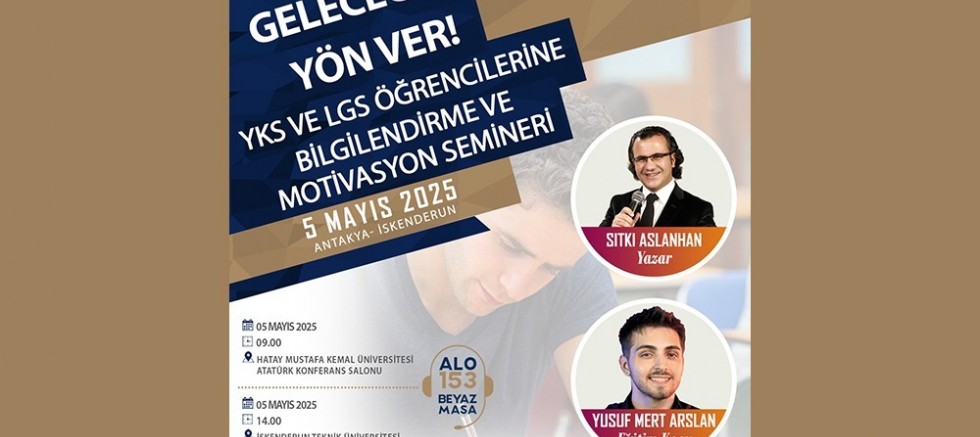Öğrencilerin stresle başa çıkma, sınavlara dair güncel bilgiler ve kariyer planlaması konularında bilgiler edineceği söyleşilerin olduğu seminer programı, 5 Mayıs günü MKÜ Atatürk Konferans salonu saat 09.00 ve İTÜ Mustafa Yazıcı Devlet Konservatuarı’nda düzenlenecek.