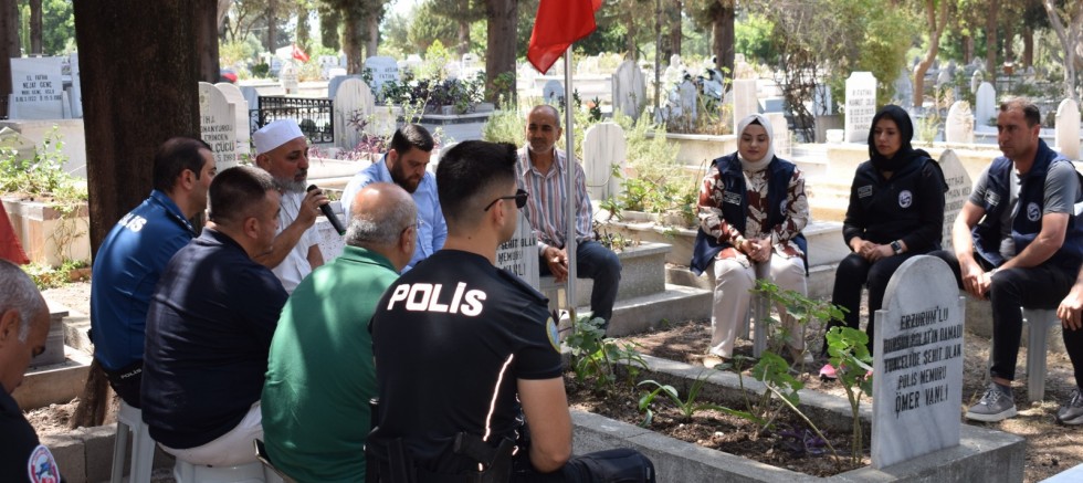 Geride bıraktıkları kıymetli ailelerinin her zaman yanlarında olduklarını hissettirmek amacıyla düzenlenen ziyaretlerde, İskenderun ilçesinde Şehit Polis Ömer Vanlı ve Antakya Açıkdere Mahallesi'nde Şehit PÖH Cuma Bilek’in mezarları ziyaret edildi.