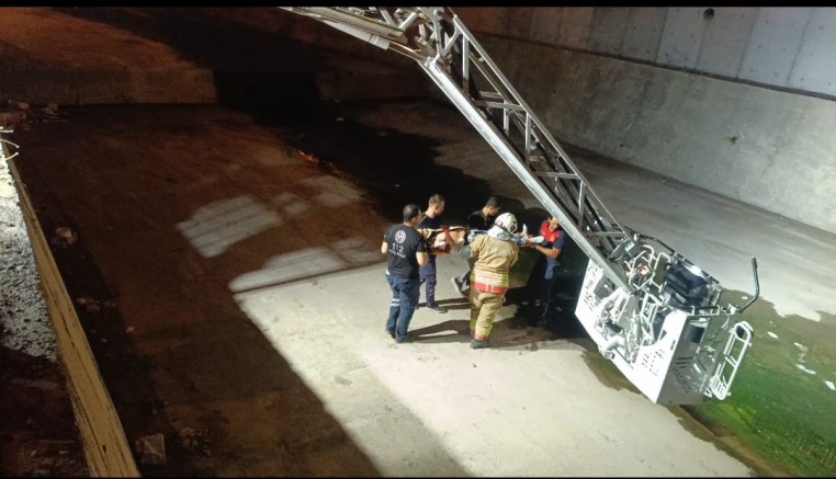 İtfaiye ekipleri titiz ve dikkatli çalışmalarıyla kanalda mahsur kalan yaralıyı, kısa sürede bulunduğu yerden kurtardı.