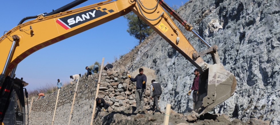 30 bin metreküpün üzerinde istinat duvarı inşası yapılan projede önemli bir yol kat eden ekipler, tahliye kanalları ve sanat yapılarının çalışmalarını sürdürüyor.