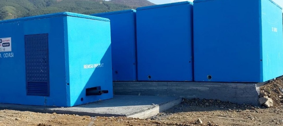 Hatay Büyükşehir Belediyesi Su ve Kanalizasyon İdaresi Genel Müdürlüğü (HATSU), Arsuz Karahüseyinli Mahallesi’ne su iletimi sağlayan depoda iyileştirme çalışması gerçekleştirirken mevcut deponun yetersiz olmasından dolayı da 150 m³ hacimli yeni prekast depo montajı yaptı.